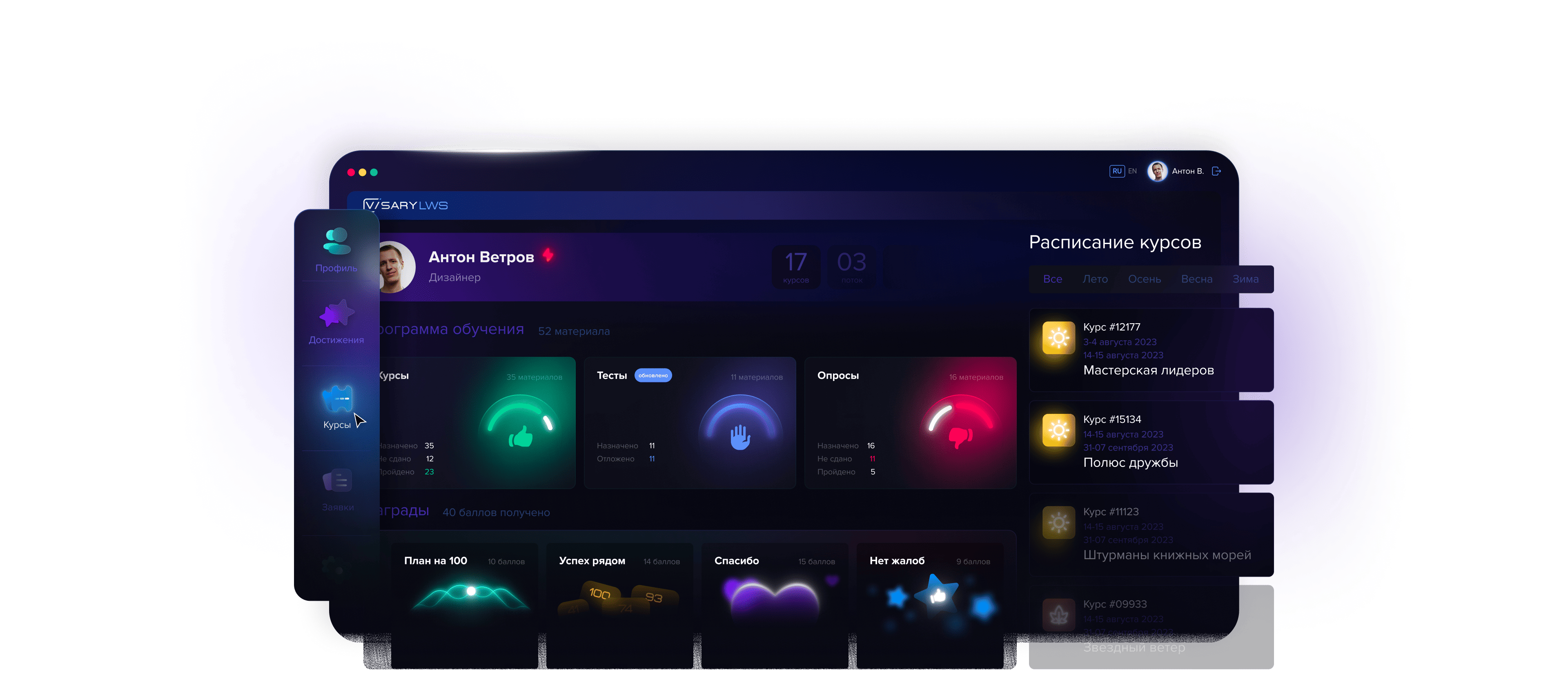 Реализация личных кабинетов пользователей предоставляет возможность индивидуально настраивать рабочие столы под обучающегося или группу обучающихся. Реализуется вывод всей необходимой информации от программы обучения, данных преподавателей и менторов до табеля успеваемости. Поддерживаются различные механизмы оценки тестовых заданий.
